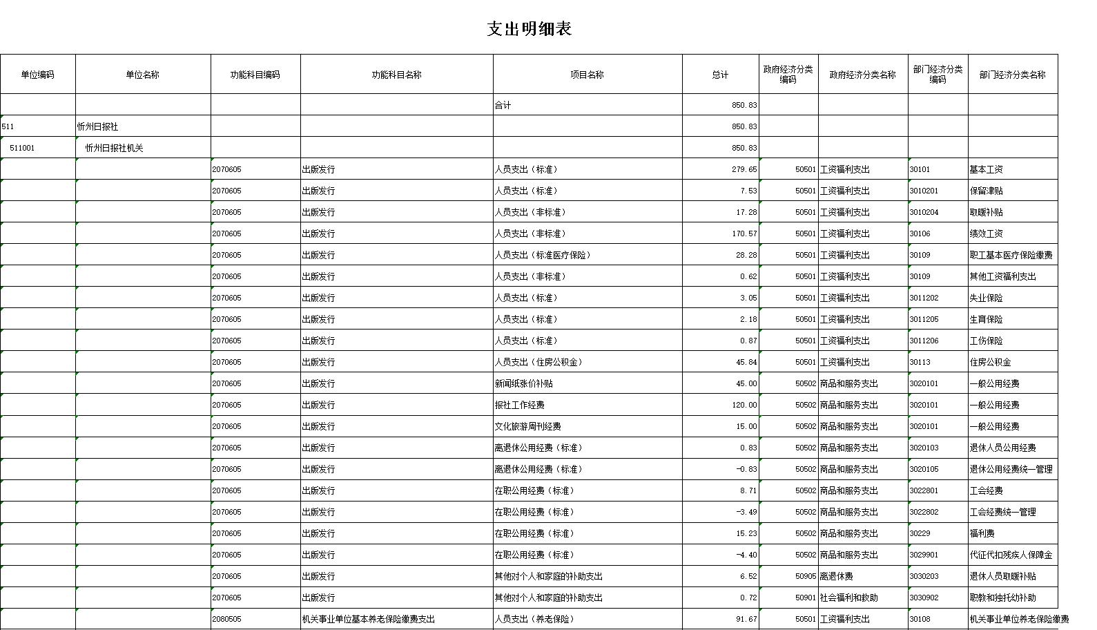 14、支出明細(xì)表