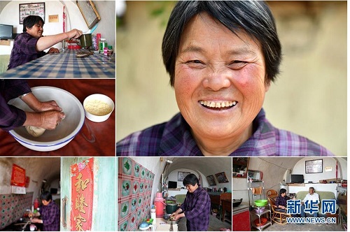 王秀英,女,1949年出生,山西省長(zhǎng)治市武鄉(xiāng)縣鴉煙村人。王秀英和丈夫董風(fēng)唐享受民政救助。老兩口在村里種地、養(yǎng)雞、放羊,2018年家庭收入達(dá)到1萬(wàn)4千多元。王秀英說(shuō),現(xiàn)在各項(xiàng)政策都好,我們?cè)诖謇锷畹猛玫摹?右上:王秀英肖像;左上:王秀英在家中收拾;左中:王秀英在和面;左下:王秀英在做午飯;下中:王秀英在洗菜;下右:王秀英(左)和丈夫董風(fēng)唐在家中聊天(拼版照片,6月11日攝)。 地處晉東南的山西省長(zhǎng)治市,位于由太行山、太岳山環(huán)繞而成的上黨盆地中。在群山中、崖壁上,許多村莊自然條件惡劣,基礎(chǔ)設(shè)施落后,脫貧致富是大山深處人們的迫切心愿。 近年來(lái),一場(chǎng)場(chǎng)脫貧攻堅(jiān)戰(zhàn),在一個(gè)個(gè)深山村打響。政府全力探索脫貧路徑的同時(shí),山區(qū)百姓因地制宜,靠自己的雙手和智慧走上致富路,交出了一份扎實(shí)的脫貧答卷。 記者在太行山、太岳山一路尋訪,記錄下多位70歲老人的生活。這些共和國(guó)的同齡人,親歷了山鄉(xiāng)的巨變,見證著長(zhǎng)治山區(qū)脫貧攻堅(jiān)偉大工程的一步步推進(jìn)。 新華社記者 詹彥 攝