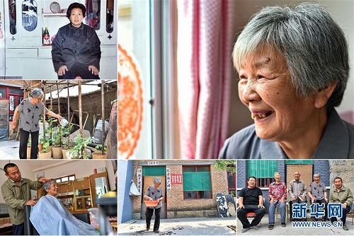 申愛苗,女,1949年出生,山西省長(zhǎng)治市潞城區(qū)辛安村人,全家5口人靠種植9畝田地為生,2015年因丈夫和兒子相繼患病而失去收入來源,生活貧困。2016年,在當(dāng)?shù)卣膸椭拢陳勖绲膬鹤訁⒓恿嗣撠毤寄芘嘤?xùn)并在村里開了一家理發(fā)店。2018年全家脫貧。 右上:申愛苗肖像;左上:申愛苗1995年在家里的舊照;左中:申愛苗在院子里給植物澆水;左下:申愛苗讓兒子給自己理發(fā);下中:申愛苗在清理院子;下右:申愛苗(右二)和家人在院子里合影(拼版照片,6月11日攝)。 地處晉東南的山西省長(zhǎng)治市,位于由太行山、太岳山環(huán)繞而成的上黨盆地中。在群山中、崖壁上,許多村莊自然條件惡劣,基礎(chǔ)設(shè)施落后,脫貧致富是大山深處人們的迫切心愿。 近年來,一場(chǎng)場(chǎng)脫貧攻堅(jiān)戰(zhàn),在一個(gè)個(gè)深山村打響。政府全力探索脫貧路徑的同時(shí),山區(qū)百姓因地制宜,靠自己的雙手和智慧走上致富路,交出了一份扎實(shí)的脫貧答卷。 記者在太行山、太岳山一路尋訪,記錄下多位70歲老人的生活。這些共和國(guó)的同齡人,親歷了山鄉(xiāng)的巨變,見證著長(zhǎng)治山區(qū)脫貧攻堅(jiān)偉大工程的一步步推進(jìn)。 新華社記者 曹陽 攝