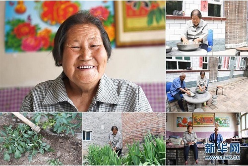 張桂香,女,1949年出生,山西省長(zhǎng)治市沁源縣西務(wù)村人。2015年,她因病被納入建檔立卡貧困戶。在當(dāng)?shù)卣婉v村工作隊(duì)調(diào)查研究后,張桂香家得以享受光伏扶貧收益資金,丈夫趙九勝也被聘用為護(hù)林員。2018年,他們家年收入超過(guò)了8000元。 左上:張桂香肖像;右上:張桂香在家里洗菜;右中:張桂香(右)和老伴趙九勝在家里洗菜;下右:張桂香(左)和老伴趙九勝在家里合影;下中、下左:張桂香在家門口的菜地里干活(拼版照片,6月20日攝)。 地處晉東南的山西省長(zhǎng)治市,位于由太行山、太岳山環(huán)繞而成的上黨盆地中。在群山中、崖壁上,許多村莊自然條件惡劣,基礎(chǔ)設(shè)施落后,脫貧致富是大山深處人們的迫切心愿。 近年來(lái),一場(chǎng)場(chǎng)脫貧攻堅(jiān)戰(zhàn),在一個(gè)個(gè)深山村打響。政府全力探索脫貧路徑的同時(shí),山區(qū)百姓因地制宜,靠自己的雙手和智慧走上致富路,交出了一份扎實(shí)的脫貧答卷。 記者在太行山、太岳山一路尋訪,記錄下多位70歲老人的生活。這些共和國(guó)的同齡人,親歷了山鄉(xiāng)的巨變,見證著長(zhǎng)治山區(qū)脫貧攻堅(jiān)偉大工程的一步步推進(jìn)。 新華社記者 楊晨光 攝