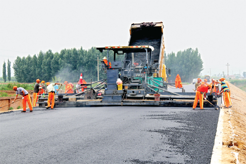 圖為勝利路南延工程鋪設最后一遍瀝青。(趙曉煒 智芝龍 攝)