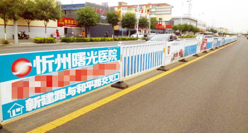 近日發(fā)現(xiàn),市區(qū)街道的護(hù)欄上懸掛有廣告牌,這種現(xiàn)象不僅影響行車駕駛者視線和交通安全,也對(duì)市容市貌產(chǎn)生不良影響。希望相關(guān)部門能管理整治。一網(wǎng)友攝