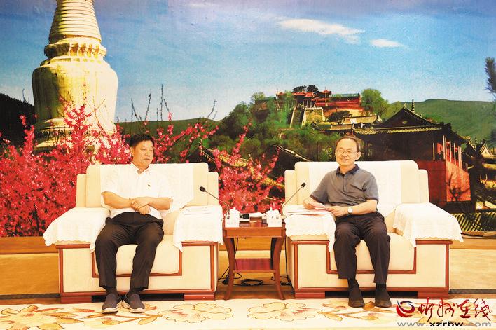 市委書記鄭連生與北京城建道橋建設(shè)集團(tuán)有限公司黨委書記姚自然會談。本報(bào)記者 劉紀(jì)森 攝