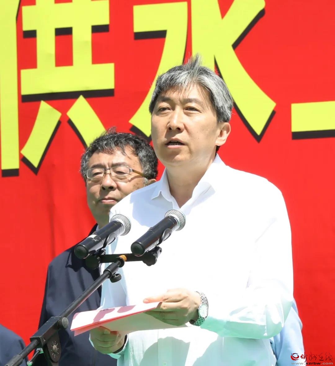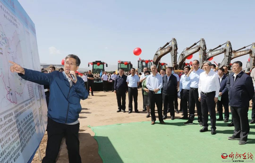 朱曉東出席主會場活動并講話。范濤 攝 朱曉東代表市委市政府對工程開工表示熱烈祝賀,向一直以來關(guān)心支持忻州水利事業(yè)的各級各部門表示衷心感謝。他說,水是生命之源、生產(chǎn)之要、生態(tài)之基,加快水利建設(shè)對忻州具有特殊重要意義。實施縣域小水網(wǎng)供水工程是忻州“五水綜改”進(jìn)程中的一件大事,也是忻州水利建設(shè)史上的一件要事,更是群眾期盼多年的一件實事。它有利于統(tǒng)籌水資源配置,有利于補齊西部縣缺水短板,更有利于為縣域經(jīng)濟持續(xù)健康發(fā)展提供重要的支撐和保障。 朱曉東強調(diào),開工僅僅是起點,大量工作才剛剛開始。為確保工程盡快建成受益,我們要提高站位抓落實。實施縣域小水網(wǎng)供水工程,是踐行習(xí)近平總書記重要治水思想,貫徹全省“五水綜改”戰(zhàn)略部署和推動全市高質(zhì)量高速度趕超型跨越式發(fā)展的具體舉措。能否抓好這項工作,考驗的是我們的政治能力和政治擔(dān)當(dāng),我們一定要以高度的政治責(zé)任感和歷史使命感,統(tǒng)籌推進(jìn)水災(zāi)害防治、水資源節(jié)約、水生態(tài)保護、水環(huán)境治理,認(rèn)真做好各項工作,著力提升工程效益,真正交出合格答卷。我們要真抓實干提效率。無論是市直部門,還是項目投資方、建設(shè)方都要咬定目標(biāo),心往一處想、勁往一處使,把高質(zhì)量高效率的要求貫穿工程建設(shè)全過程各環(huán)節(jié),緊緊抓住當(dāng)前施工的黃金期,盯緊時間節(jié)點,強化專班推進(jìn),做實三保一控,真正把縣級換屆換出來的新氣象彰顯出來,把干部群眾加快發(fā)展的活力激發(fā)出來,提速沖刺,真抓實干,確保8座調(diào)蓄水庫工程以及飲水供水工程今年年底前全部建成。我們要凝心聚力出精力。各縣要樹牢大局意識,強化結(jié)果導(dǎo)向,扎實搞好服務(wù)保障,既要做到工程建設(shè)零干擾,又要認(rèn)真解決好沿線群眾的生產(chǎn)生活問題。各職能部門要創(chuàng)新思路,破解難題,創(chuàng)造良好的建設(shè)條件。各建設(shè)單位要嚴(yán)格落實項目法人責(zé)任制、項目建設(shè)監(jiān)理制,確保工程安全和質(zhì)量,真正打造一流工程、精品工程和民心工程,共同做好忻州科學(xué)興水治水大文章。
