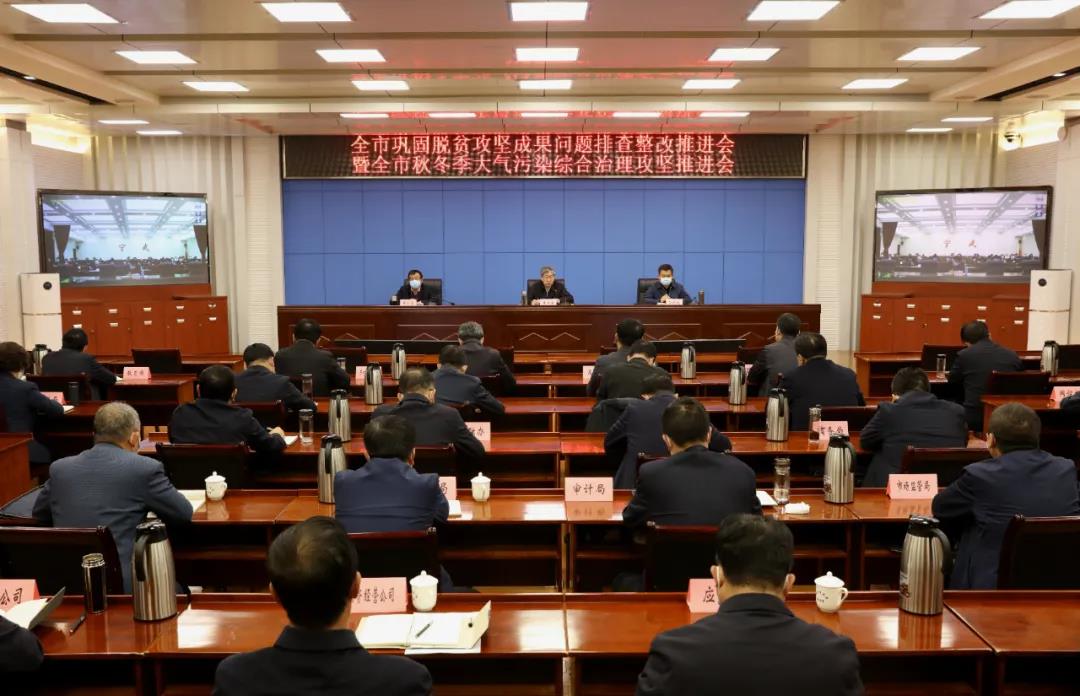 本報(bào)訊 (記者任逢春)11月2日,我市召開鞏固脫貧攻堅(jiān)成果問題排查整改暨秋冬季大氣污染綜合治理攻堅(jiān)推進(jìn)會(huì),貫徹全省相關(guān)會(huì)議精神,對(duì)我市工作進(jìn)行安排部署。市長朱曉東主持會(huì)議并講話。副市長耿鵬鵬,市政府秘書長張艮生出席。會(huì)議以視頻形式召開,各縣(市、區(qū))設(shè)分會(huì)場,市直相關(guān)部門主要負(fù)責(zé)人在市主會(huì)場參加。