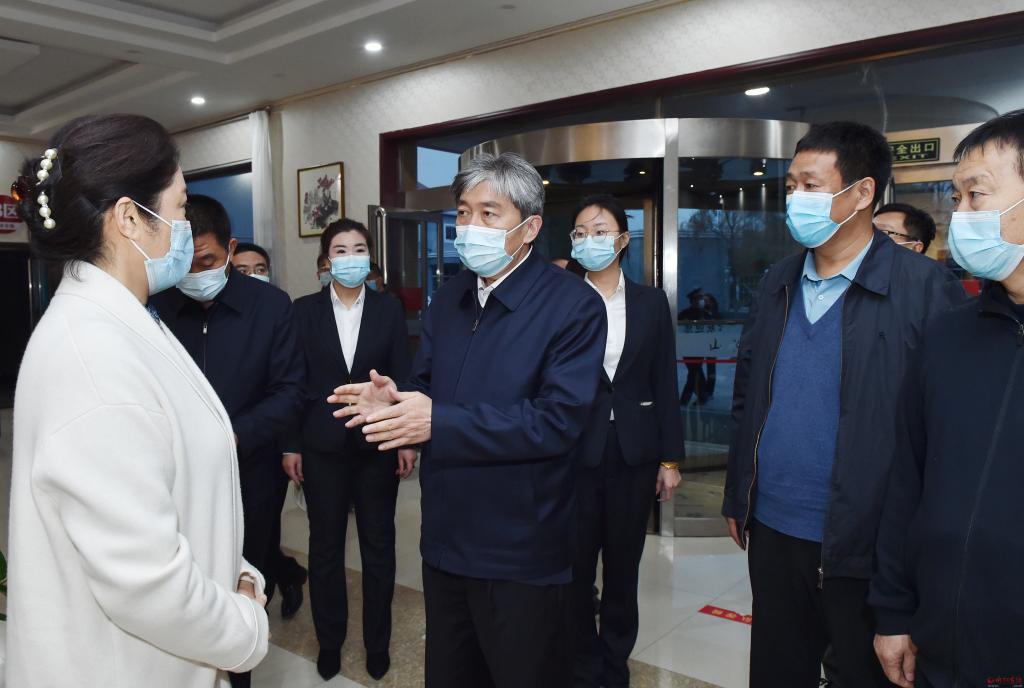 朱曉東一行先后來到忻州城區(qū)七一路和頓村、奇村等地酒店隔離點,每到一處,朱曉東都通過實地察看、聽取匯報、交流詢問等方式,詳細(xì)了解隔離場所管理運行、通道設(shè)置、工作人員配備、值班值守、環(huán)境消殺、物資儲備等情況,并就在督查中發(fā)現(xiàn)的問題現(xiàn)場提出整改意見。調(diào)研中,朱曉東還向奮戰(zhàn)在一線的醫(yī)護人員、后勤保障人員表示慰問,叮囑他們既要保障好隔離人員的正常生活,也要加強自我防護,確保各項工作流程形成閉環(huán),堅決杜絕出現(xiàn)交叉感染。