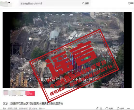 詳情:4月7日、8日,新疆阿克蘇地區(qū)拜城縣先后發(fā)生5.4、5.1級(jí)地震。震中位于無(wú)人區(qū),目前暫未收到人員傷亡或財(cái)產(chǎn)損失報(bào)告,當(dāng)?shù)赝ㄓ崱⒐╇?、交通正常。但有部分自媒體為博眼球、蹭流量,利用AI智能技術(shù)等手段拼湊網(wǎng)絡(luò)舊圖,發(fā)布拜城地震不實(shí)圖文、音視頻等信息,嚴(yán)重誤導(dǎo)網(wǎng)民。阿克蘇地區(qū)互聯(lián)網(wǎng)信息辦公室提醒,對(duì)在網(wǎng)上蓄意編造、傳播散布謠言,擾亂公共秩序等違法行為,網(wǎng)信部門(mén)將會(huì)同公安機(jī)關(guān)依法嚴(yán)厲打擊。(來(lái)源:“新疆網(wǎng)絡(luò)辟謠”微信公眾號(hào))