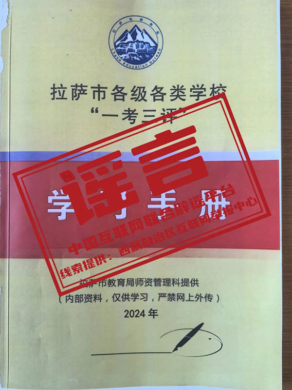 詳情:近期,西藏自治區(qū)拉薩市教育局接到教師反饋,稱有人以拉薩市教育局師資管理科名義,以50元/本的價(jià)格,售賣2024年《拉薩市各級(jí)各類學(xué)?!耙豢既u”學(xué)習(xí)手冊》。對此,拉薩市教育局發(fā)布辟謠聲明稱:我局2024年未印發(fā)“一考三評”學(xué)習(xí)手冊,未委托任何機(jī)構(gòu)和個(gè)人以任何形式向教師售賣2024年《拉薩市各級(jí)各類學(xué)?!耙豢既u”學(xué)習(xí)手冊》。請廣大教師保持高度警惕,不信謠、不傳謠、不造謠,謹(jǐn)防上當(dāng)受騙。(來源:“西藏舉報(bào)”微信公眾號(hào)、“拉薩教育”微信公眾號(hào))