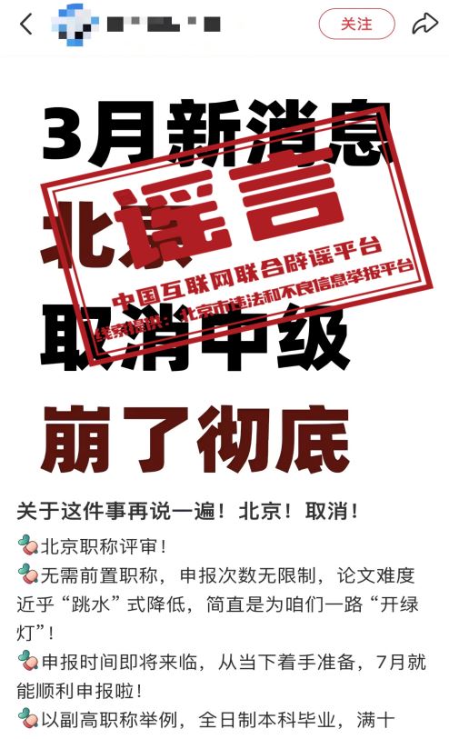 辟謠:“北京取消中級(jí)職稱”系謠言
