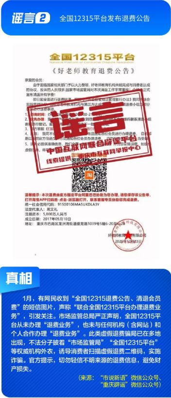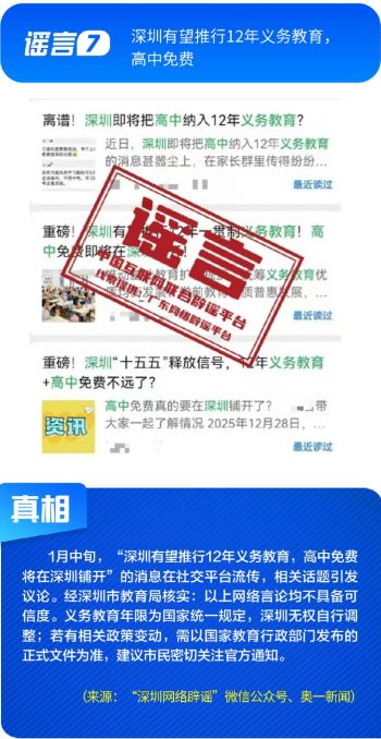 ??公共政策領(lǐng)域謠言誤導公眾決策?!吧绫?]有有效期限制、未到期不能換新卡”是對社??ü芾碚叩恼`讀,給民眾平添困擾;“28家博物館元旦期間閉館”實為少數(shù)博物館根據(jù)運營安排所做的微調(diào),網(wǎng)帖嚴重夸大實際閉館情況,引發(fā)負面炒作;“深圳有望推行12年義務(wù)教育,高中免費”是對現(xiàn)行政策的“超前編造”,誤導學生及家長群體;“全國12315平臺發(fā)布退費公告”,則是假冒監(jiān)管機構(gòu)名義散播不實通知,為后續(xù)詐騙行為做鋪墊。