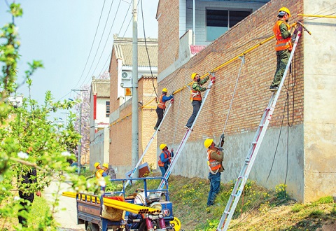 四月八日,施工人員在運城市鹽湖區(qū)上郭鄉(xiāng)中陳莊村架設(shè)天然氣管道。該區(qū)大力推進清潔能源建設(shè)推廣步伐,加快“煤改氣”“煤改電”重點民生項目工程建設(shè),對農(nóng)村現(xiàn)有住宅進行節(jié)能改造,提高保溫隔熱效能。(任志堅攝)