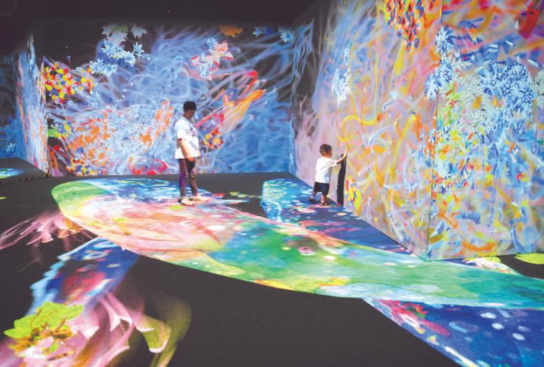 6月6日,小朋友在科技藝術(shù)節(jié)上的“teamLab Future Park”未來(lái)游樂(lè)園中體驗(yàn)交互動(dòng)畫。