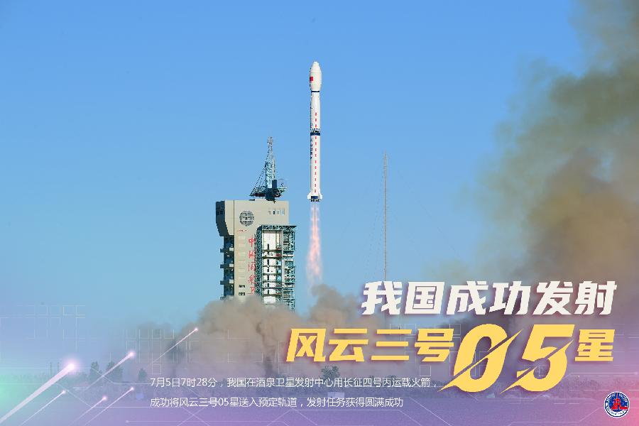 7月5日7時(shí)28分,我國在酒泉衛(wèi)星發(fā)射中心用長征四號(hào)丙運(yùn)載火箭,成功將風(fēng)云三號(hào)05星送入預(yù)定軌道,發(fā)射任務(wù)獲得圓滿成功。新華社發(fā)(汪江波 攝)