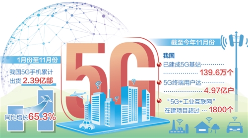 我國5G網(wǎng)絡(luò)建設(shè)和應(yīng)用正加速推進。截至今年11月份,已建成5G基站139.6萬個,5G終端用戶達(dá)到4.97億戶,“5G+工業(yè)互聯(lián)網(wǎng)”在建項目超過1800個。