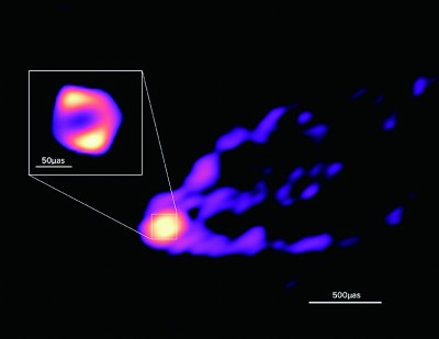 “以前我們曾在單獨的圖像中分別看到過黑洞和噴流,但現(xiàn)在我們在一個新的波段拍攝了黑洞和噴流的全景圖。”路如森介紹,研究表明,黑洞周圍的物質(zhì)是在一個被稱為“吸積”的過程中落入黑洞的,但是從來沒有人直接對它進(jìn)行過成像。“我們之前看到的環(huán)狀結(jié)構(gòu)在3.5毫米波長變得更大、更厚。這表明在新的圖像中可以看到落入黑洞的物質(zhì)產(chǎn)生了額外的輻射。這使得我們能夠更全面地了解黑洞周圍的物理過程?!?/p>