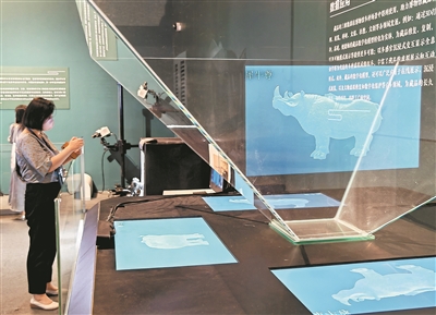 在“數(shù)說犀尊”展覽上,展廳綜合運用了高清三維掃描、超高清顯示、人工智能、紅外感應(yīng)、增強現(xiàn)實等科技手段展示文物研究成果??萍既請笥浾?洪星攝