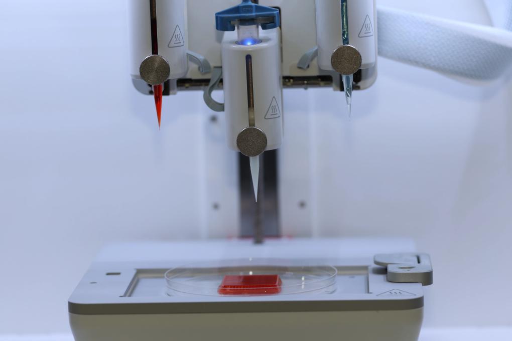 在陣陣規(guī)律的“打印”聲中,裝有紅色和白色“生物墨水”的打印噴頭來(lái)回移動(dòng),白色托盤里方塊形狀的“豬肉”逐漸變厚,色澤誘人……走進(jìn)南京農(nóng)業(yè)大學(xué)肉品質(zhì)量控制與新資源創(chuàng)制全國(guó)重點(diǎn)實(shí)驗(yàn)室,科研人員正在開(kāi)展3D生物打印細(xì)胞培養(yǎng)肉研究。 南京農(nóng)業(yè)大學(xué)特聘教授、實(shí)驗(yàn)室主任周光宏說(shuō),3D生物打印細(xì)胞培養(yǎng)肉技術(shù)已經(jīng)成熟,無(wú)論是形狀還是肥瘦比例,都可以實(shí)現(xiàn)個(gè)性化設(shè)定。 周光宏告訴半月談?dòng)浾撸凹?xì)胞培養(yǎng)肉”是依據(jù)肉類在動(dòng)物機(jī)體里的生長(zhǎng)規(guī)律,利用體外培養(yǎng)和生物制造方式培養(yǎng)動(dòng)物細(xì)胞而生產(chǎn)的可食用肉類。“也就是說(shuō),不需要養(yǎng)殖、屠宰就可以吃到肉,口感、風(fēng)味可控,還可以人工調(diào)節(jié)蛋白質(zhì)、脂肪含量,減少飽和脂肪酸成分?!?/p>