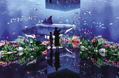 圖為游客在位于濟南市的山東省美術館參觀體驗“無限之海”沉浸式AI數(shù)字藝術展。新華社發(fā)(郝鑫城 攝)