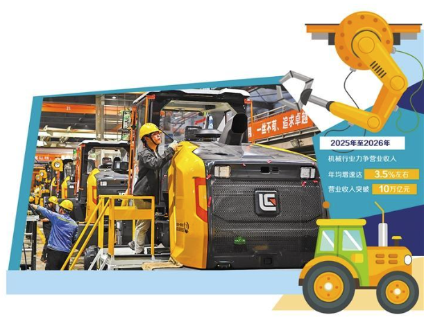 《方案》提出,2025年至2026年,機(jī)械行業(yè)運(yùn)行保持平穩(wěn)向好態(tài)勢(shì),重點(diǎn)產(chǎn)業(yè)鏈供應(yīng)鏈韌性和安全水平持續(xù)提升,發(fā)展質(zhì)量效益邁上新臺(tái)階,力爭(zhēng)營(yíng)業(yè)收入年均增速達(dá)到3.5%左右,營(yíng)業(yè)收入突破10萬億元。中國(guó)機(jī)械工業(yè)聯(lián)合會(huì)相關(guān)負(fù)責(zé)人表示,《方案》的目標(biāo)設(shè)定,體現(xiàn)了規(guī)模與質(zhì)量并重的系統(tǒng)性思維,強(qiáng)調(diào)供給和需求兩側(cè)協(xié)同發(fā)力。