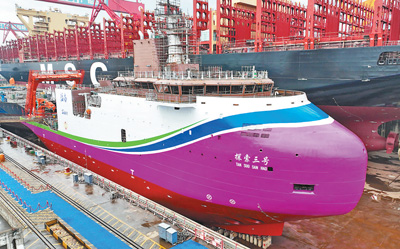 該船建造內(nèi)容包括船舶系統(tǒng)、載人深潛水面支持系統(tǒng)和綜合科考作業(yè)系統(tǒng),續(xù)航力1.5萬海里、載員80人,可為深遠(yuǎn)海地質(zhì)、環(huán)境和生命科學(xué)相關(guān)前沿問題研究提供所需的樣品和環(huán)境數(shù)據(jù),支持深海核心技術(shù)裝備的海上試驗(yàn)與應(yīng)用。此次出塢后,將開展設(shè)備調(diào)試和系統(tǒng)聯(lián)調(diào)、船舶海試和科考設(shè)備海試等,預(yù)計(jì)于2025年完工交船、投入海上作業(yè)。