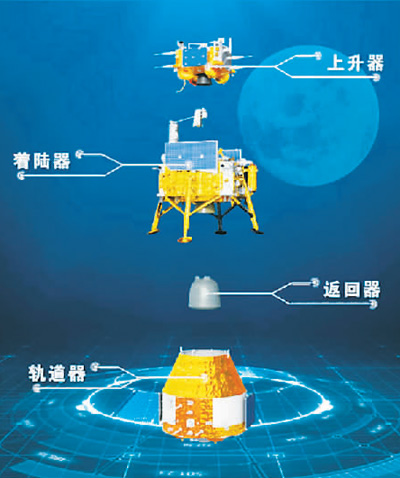 嫦娥六號(hào)各部分示意圖。圖片來源:國(guó)家航天局官網(wǎng)