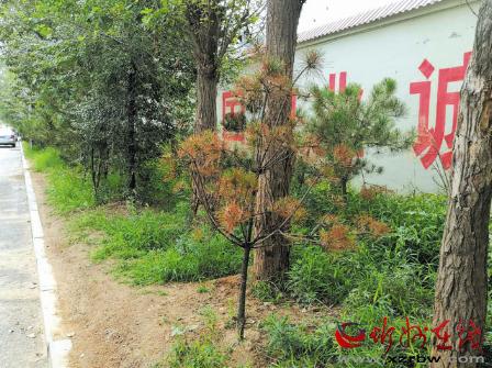 本報訊 近日,記者途經城區(qū)龍崗街時發(fā)現(xiàn),在忻州市第三中學大門西面道路旁的綠化帶中,有部分樹木出現(xiàn)干枯現(xiàn)象,與旁邊郁郁蔥蔥的綠籬形成了鮮明對比,影響市容市貌。希望相關部門及時“補綠”,并加大管養(yǎng)維護力度,確保樹木枝繁葉茂,給市民營造一個綠色宜居的居住環(huán)境。 (張志遠)