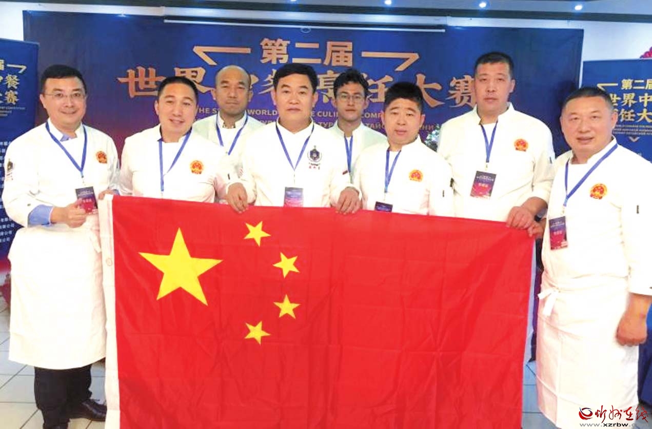 2019年10月,王力群(前排左三)帶領(lǐng)學員在莫斯科獲得了世界中餐大賽金獎