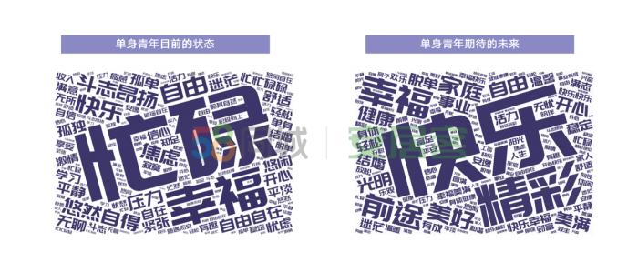 而對(duì)于未來(lái),單身青年們最希望自己能“快樂(lè)”,追求“自由”“精彩”的人生,期望擁有“美滿(mǎn)”“幸?!钡摹扒巴尽?。(完)