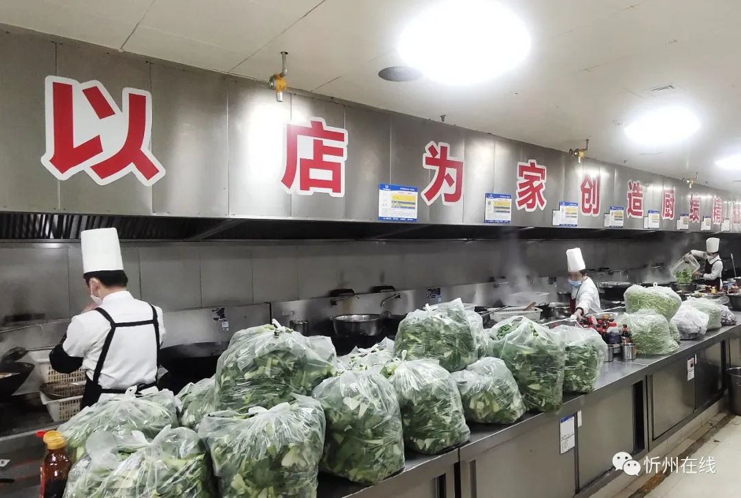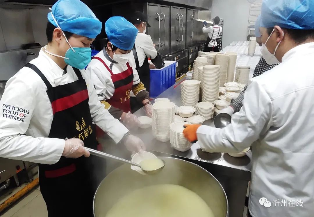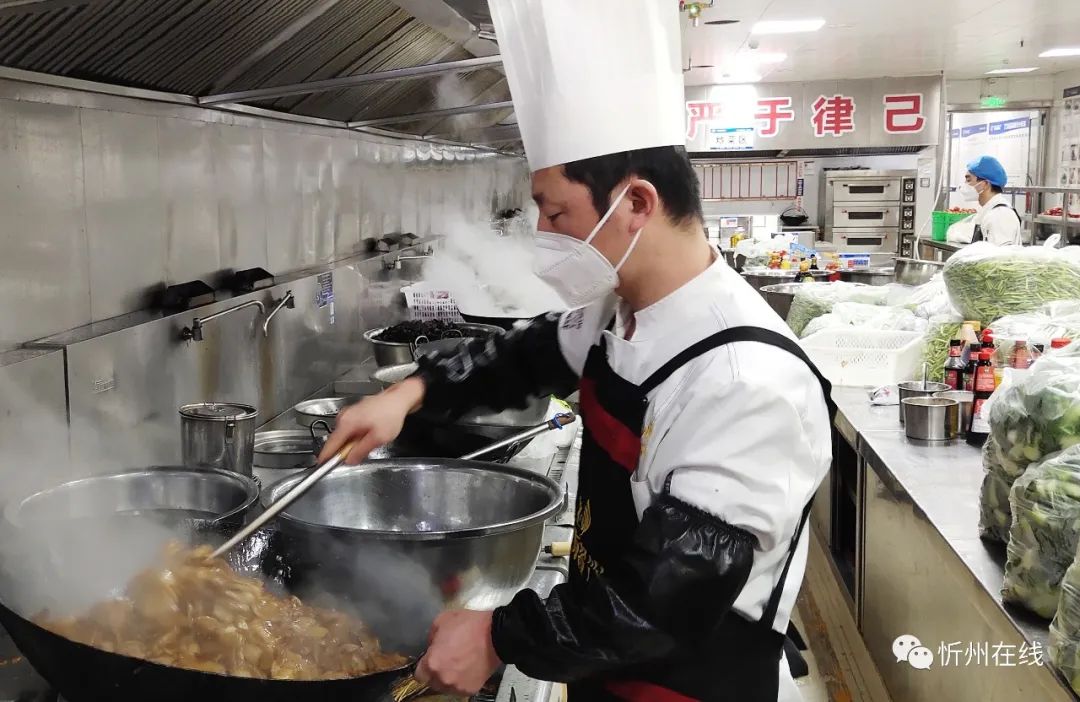 紅燒肉、過油肉、涼拌菜……12月2日下午,忻州丁方文化餐飲管理有限公司的廚師們正在有序忙碌著,一道道剛出鍋的飯菜被分餐員迅速分裝、打包、裝箱,他們要趕在18點(diǎn)之前送往忻州市級方艙醫(yī)院。