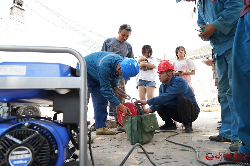 在黑崖堂村,路邊的超市門外一片狼藉,地面遍布的巨大卵石和水泥塊,連同護(hù)欄一同倒地的變壓器,都在無聲訴說著兩三日前洪水的可怕。身著藍(lán)色工裝的電力搶修人員的到來引來了群眾的圍觀,要送電了嗎?幾名工作人員麻利地操作著,先接線為臨時搶險指揮部供電,為盡快恢復(fù)當(dāng)?shù)卣5纳a(chǎn)生活提供支撐,隨后先行修復(fù)部分電力設(shè)備和電纜,并利用應(yīng)急電源車送電到村口的變臺,再通過變臺送往村民家里,保障鄉(xiāng)親們照明等基本用電需求。