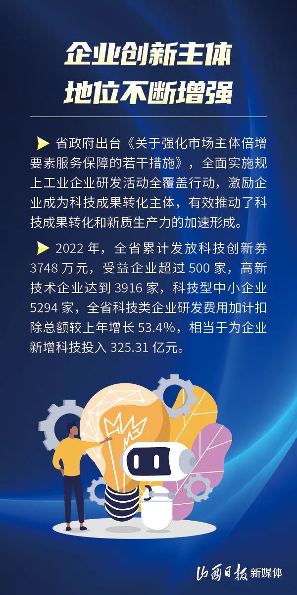 制定出臺激勵科技成果轉(zhuǎn)化法規(guī)政策24個、技術(shù)合同交易總額實現(xiàn)五年翻番、科技成果轉(zhuǎn)化引導(dǎo)專項五年累計投入2.21億元……近年來,我省科技成果轉(zhuǎn)化堅持新發(fā)展理念,加速科技成果在晉落地轉(zhuǎn)化和產(chǎn)業(yè)化,取得顯著成效。