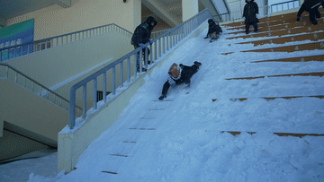 瞬間變身為孩子們的雪滑梯
