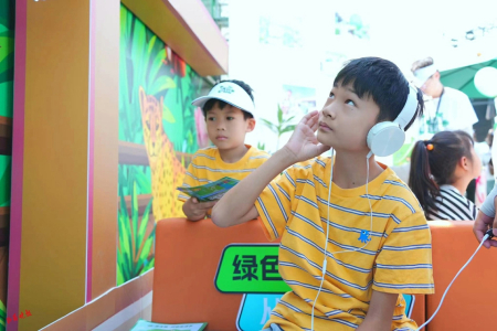 “有啄木鳥、有青蛙,剩下的我聽不出來(lái)……”在“萬(wàn)物有聲”游戲環(huán)節(jié),小朋友認(rèn)真地和環(huán)保志愿者說(shuō)。在這個(gè)環(huán)節(jié),參與者佩戴耳機(jī)后,可以根據(jù)聽到的聲音猜動(dòng)物的名稱。各種動(dòng)物的聲音,著實(shí)吸引了不少小朋友的參與,有的小朋友還模仿發(fā)出聲音的動(dòng)物形象,惟妙惟肖,讓現(xiàn)場(chǎng)不少人笑出聲來(lái)。