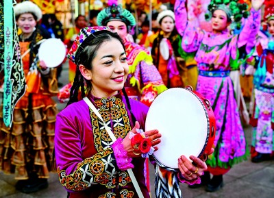 社火鬧年,年復一年。激昂的鼓點敲出了濃濃的年味,高亢的嗩吶點燃節(jié)日氣氛,各地游客和本地市民駐足觀賞這場文化盛宴,感受巴扎里的新年。