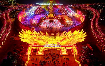 在上海,備受期待的豫園燈會已經(jīng)亮燈啟幕。伴著夜色步入豫園,古老的飛檐亭臺與璀璨的花燈交相輝映?!斑@里的奇獸異鳥造型新奇又震撼,我們就如同漫步于一個奇幻世界中?!苯K無錫的游客李進深有感觸。