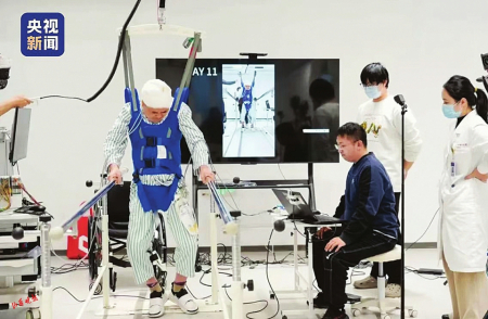 林先生已經(jīng)可以在懸吊下獨(dú)立使用助步器行走,他激動(dòng)地說(shuō):“我終于再次體會(huì)到走路的感覺(jué)。”
