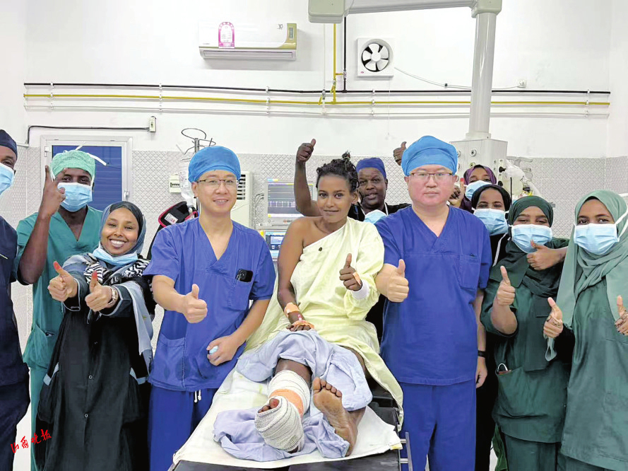在麻醉的作用下,患者全程清醒、無痛。骨科醫(yī)生楊青則憑借熟練的手術(shù)操作,成功為她實(shí)施了創(chuàng)面皮膚軟組織清創(chuàng)術(shù)?;颊咝g(shù)后恢復(fù)良好,對醫(yī)療隊(duì)的精湛醫(yī)術(shù)和無私奉獻(xiàn)表示由衷的感謝。她表示,從未想過在吉布提能夠接受到如此卓越非凡的醫(yī)療服務(wù),感謝中國醫(yī)療隊(duì)的到來,為自己帶來了希望。