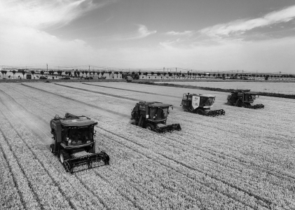 為確保麥?zhǔn)展ぷ黜樌_展,運(yùn)城市認(rèn)真落實(shí)機(jī)具調(diào)配、技術(shù)服務(wù)、應(yīng)急保障、安全生產(chǎn)等各項(xiàng)工作。共調(diào)集5500余臺(tái)小麥?zhǔn)崭顧C(jī)、4萬(wàn)多臺(tái)拖拉機(jī)和玉米播種機(jī)投入到“三夏”生產(chǎn)中。晴好的天氣也十分配合,為小麥?zhǔn)崭钐峁┝擞欣麠l件。在田間地頭,一臺(tái)臺(tái)收割機(jī)來(lái)回穿梭,將簇簇麥穗卷入機(jī)倉(cāng),顆顆飽滿的麥粒傾瀉而出,呈現(xiàn)出一派繁忙而有序的豐收景象。