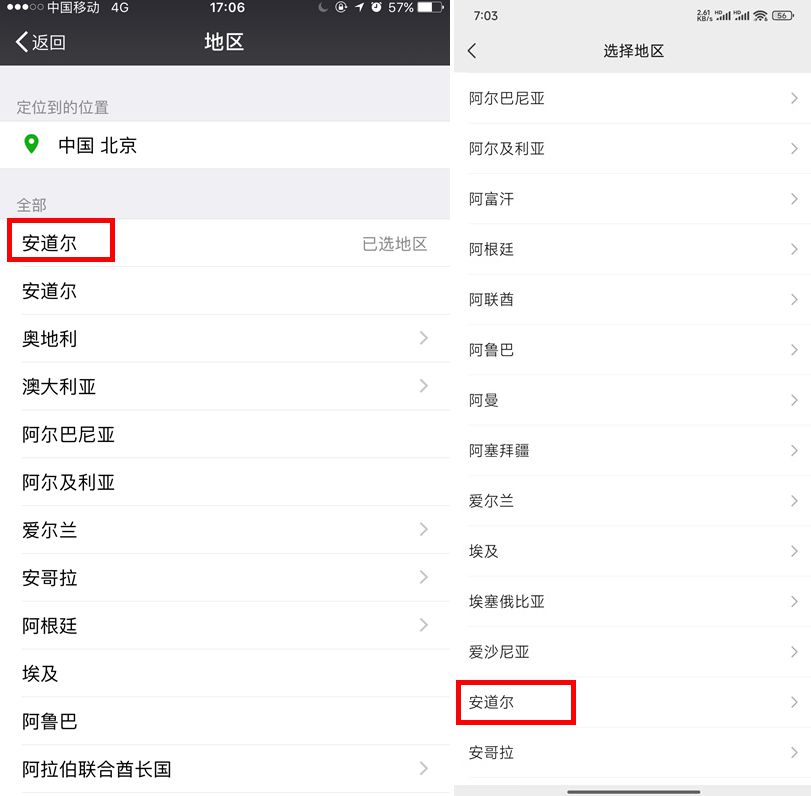 很多人在注冊微信的時候,沒在列表中翻找自己真正的所在地,微信就默認選擇了排在第一的安道爾。