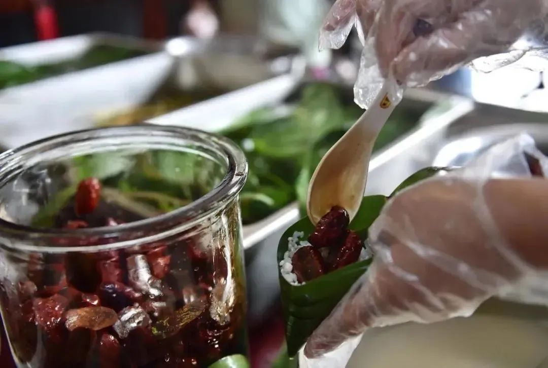 一是食材出“粽”。粽葉葉寬、色濃、味香,糯米粘糯拉絲,蜜棗更是選自原生態(tài)黃河灘棗,清洗去核后用70%的棗花蜜和30%的白砂糖浸泡而成,保持了紅棗原有的營養(yǎng)成分,口感獨(dú)特。