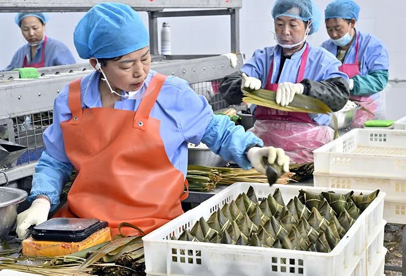 二是工藝出“粽”。“三片葦葉,三顆棗,一百克糯米不能少?!鼻嗵留兆硬粌H全手工傳統(tǒng)工藝包制,更輔以現(xiàn)代高溫滅菌和真空包裝技術(shù),傳統(tǒng)與現(xiàn)代相結(jié)合,讓青塘粽子美味更健康。