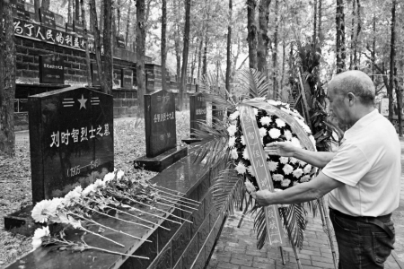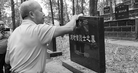 長(zhǎng)子獨(dú)立團(tuán)團(tuán)長(zhǎng)劉時(shí)智烈士的墓碑前,來(lái)自湖北省紅安縣華河鎮(zhèn)大學(xué)村的劉正業(yè)捧著從家鄉(xiāng)帶來(lái)的水和土,淚流滿(mǎn)面,反復(fù)說(shuō)著“侄子不孝,現(xiàn)在才找到您,這么晚才來(lái)看您?!?/p>