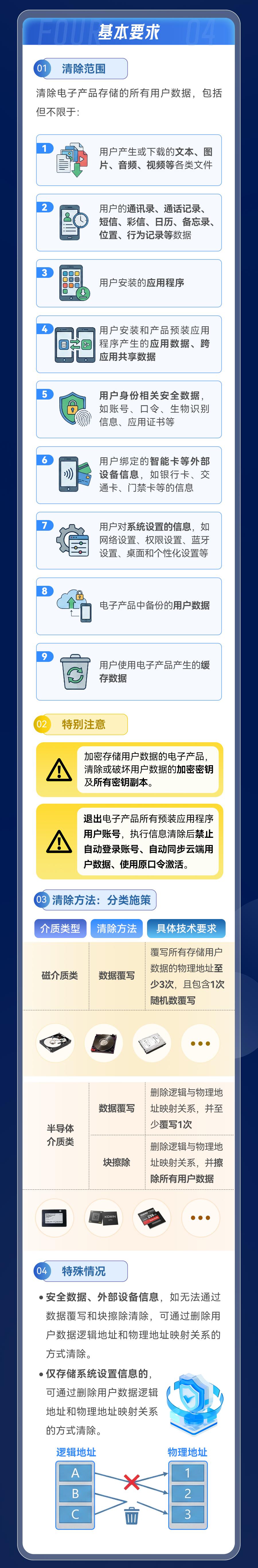 這項(xiàng)強(qiáng)制性國(guó)家標(biāo)準(zhǔn)的適用范圍涵蓋了在我國(guó)境內(nèi)生產(chǎn)、銷售的各類具有非易失性存儲(chǔ)介質(zhì)的電子產(chǎn)品,包括手機(jī)、平板電腦、筆記本電腦、臺(tái)式計(jì)算機(jī),以及智能穿戴設(shè)備、辦公設(shè)備等。其約束對(duì)象既包括電子產(chǎn)品制造商、技術(shù)服務(wù)提供方,也包括二手電子產(chǎn)品回收經(jīng)營(yíng)者。
