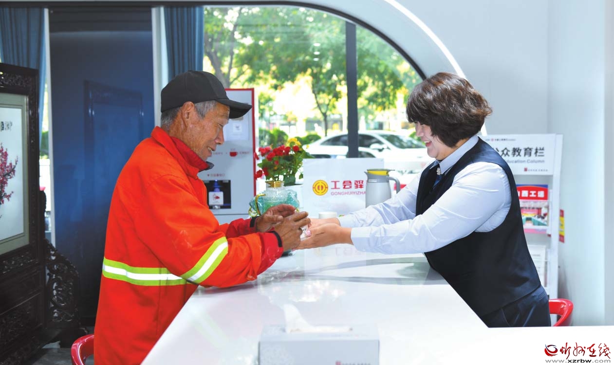工行忻州汾源支行的“工會驛站”特別關注戶外勞動者的需求,在驛站內(nèi)設立了休息區(qū),并增設了老花鏡、急救藥箱、手機充電、免費飲用水、雨傘等設施,從細節(jié)做起,給予戶外勞動者提供夏可納涼、冬可取暖、累可歇腳、遮風避雨的溫馨服務。環(huán)衛(wèi)工李師傅對“工會驛站”的體驗贊不絕口,他說:“工會驛站真的是太有愛了,渴了進來喝口水,累了進來歇歇腳,汾源支行的服務真的很貼心。”