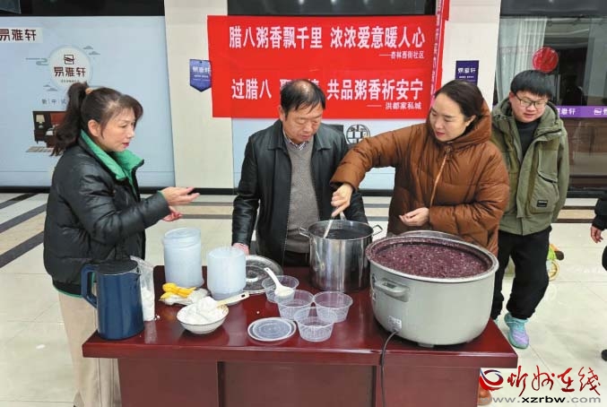 活動(dòng)當(dāng)天,社區(qū)工作人員對(duì)現(xiàn)場(chǎng)認(rèn)真消毒后,就開始熬粥:淘洗糯米,去除蓮心,把蜜棗切成小塊,再放入紅豆、桂圓、冰糖等多種食材,慢慢熬煮后,軟糯香甜的紅豆粥完成了?!昂壬弦煌霟岷鹾醯奶鹬?,心里也熱乎乎的?!杯h(huán)衛(wèi)工人李大媽開心地說。