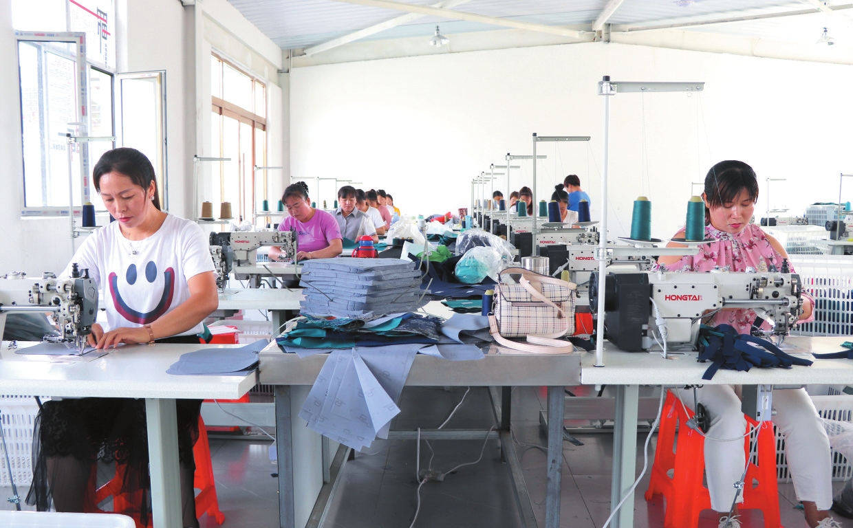 五寨縣硯城鎮(zhèn)百夢園社區(qū)箱包車間。劉篤效攝