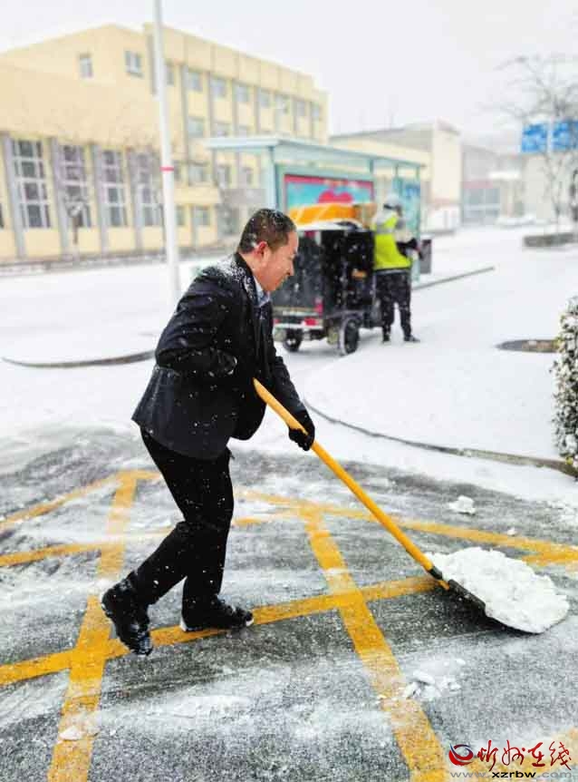 面對(duì)我市首場(chǎng)強(qiáng)降雪,農(nóng)行忻州分行員工以雪為令,及時(shí)清掃網(wǎng)點(diǎn)及周邊區(qū)域,確保服務(wù)通道暢通無(wú)阻,以實(shí)際行動(dòng)傳遞了溫暖的金融服務(wù)。(殷俊攝)