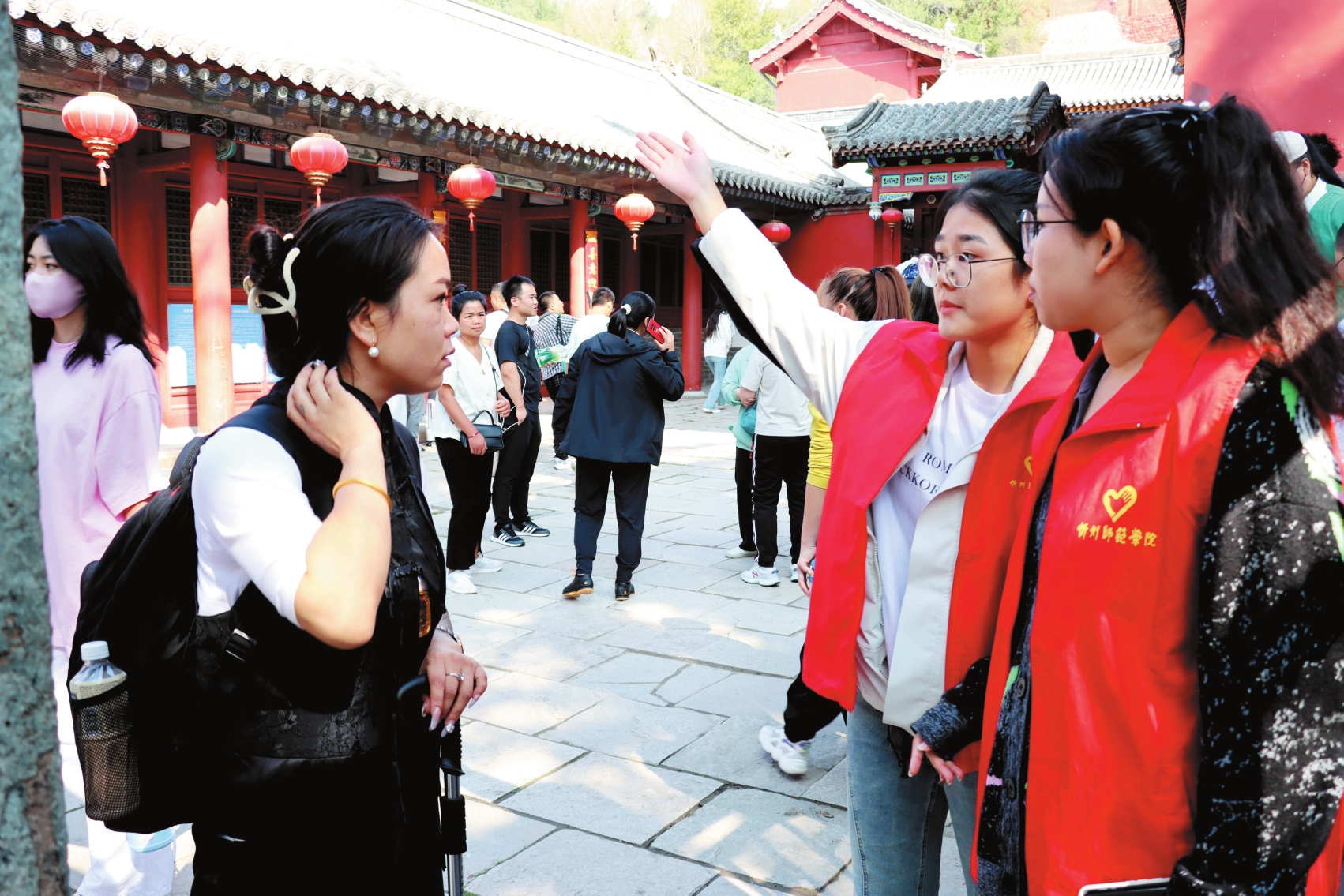 五臺山風景名勝區(qū)志愿者積極開展文明實踐活動,為游客提供全方位服務。本報通訊員攝