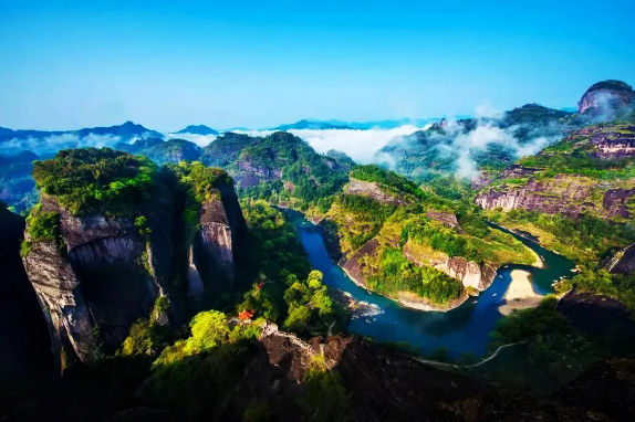 武夷山是三教名山,素有“奇秀甲東南”之美譽(yù),最高峰黃崗山海拔2158米,為東南第一峰,號稱“華東屋脊”。倘登高俯視,云興霞蔚,那九曲溪流、三十六峰、七十二洞、九十九巖的山水奇境,令人目不暇接,嘖嘖稱奇。五臺山是世界佛教名山,享有“清涼圣境”之美譽(yù),最高峰葉斗峰海拔3061米,為華北第一峰,號稱“華北屋脊”。若置身臺巔,東臺能看云海日出,西臺能賞清風(fēng)明月,南臺能觀爛漫山花,北臺能望無垢瑞雪,中臺可攬星辰萬象,一時恍若仙境,不由得馳思遐想。