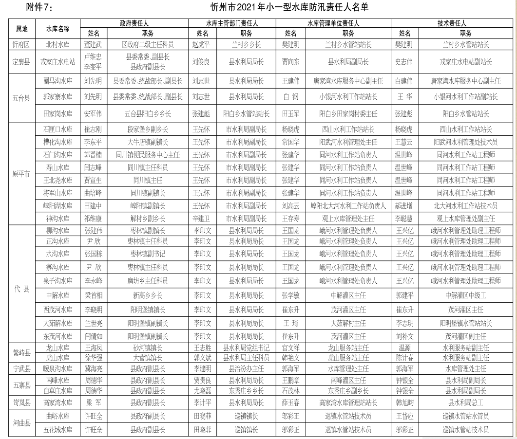 7.忻州市2021年小一型水庫防汛責(zé)任人名單